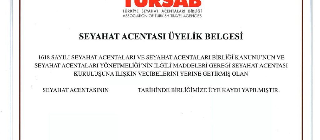 A Grubu Türsab Belgesi Alımı - Sea Lion Danışmanlık